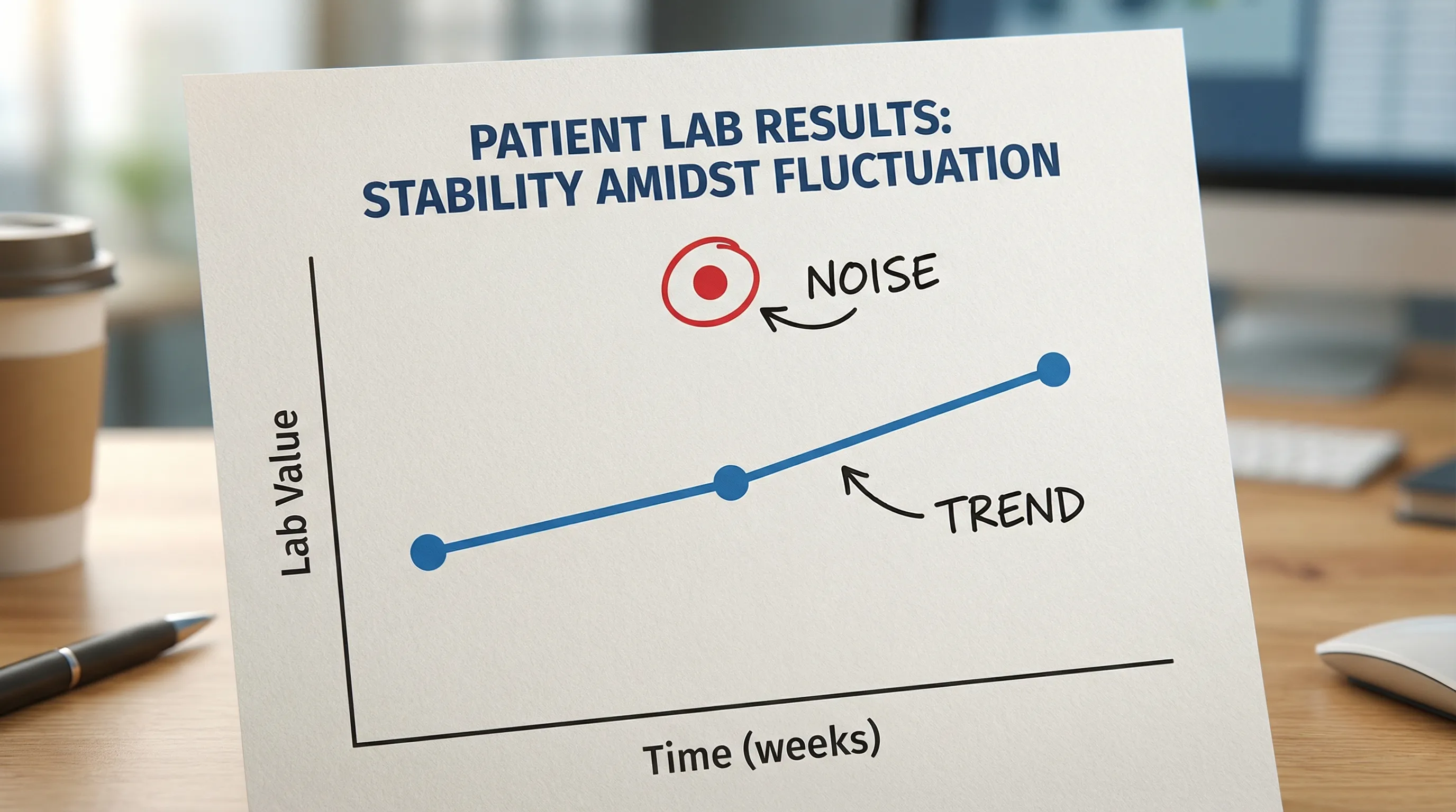 Clinicians sometimes use tools like reference change value (RCV) to judge whether a delta likely exceeds expected biological and analytical variation. You do not need to calculate RCV to benefit from the idea.