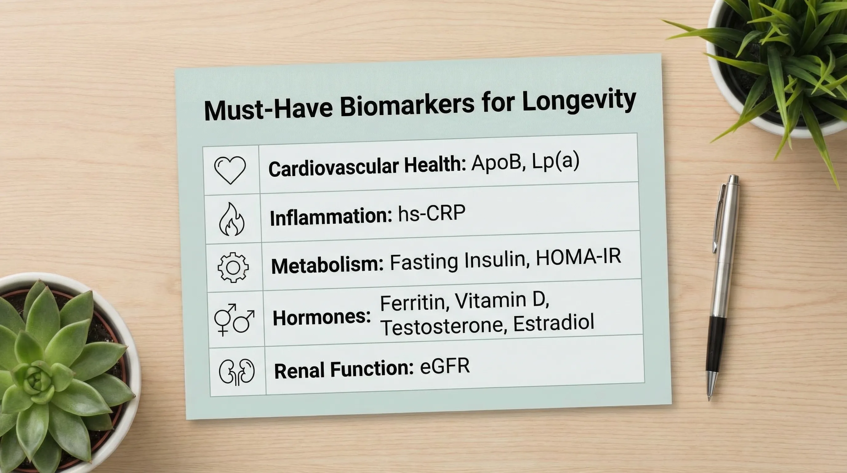 High-impact examples used in preventive and longevity medicine: