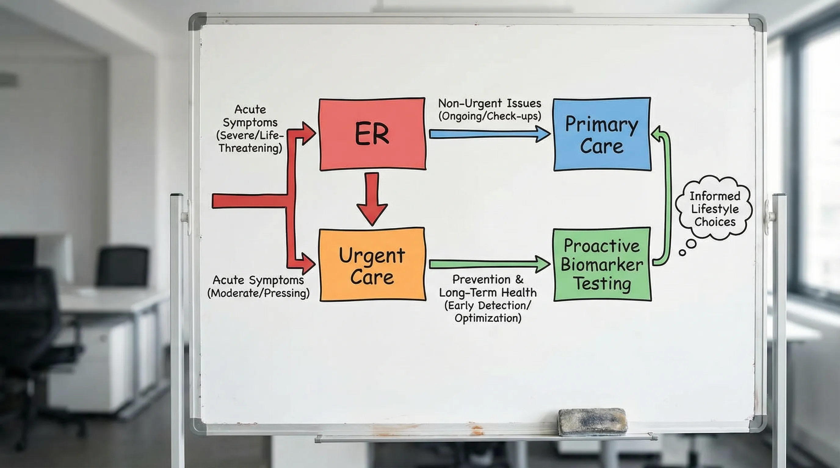 If your goal is “I want to understand what is happening in my body and prevent problems,” urgent care is usually not the best fit. It is built for episodic care.